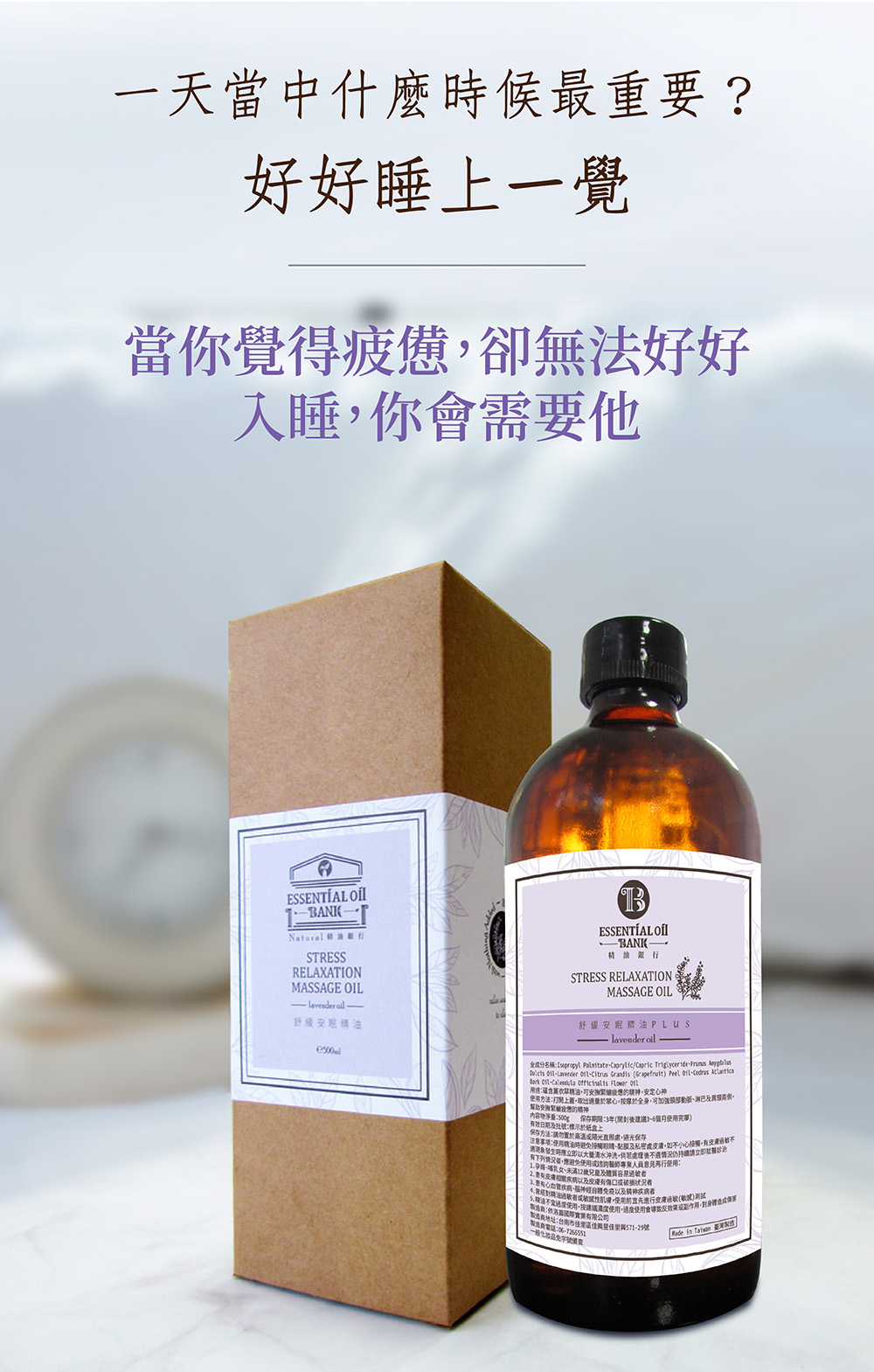 用途:蘊含薰衣草精油,可安撫緊繃疲憊的精神,安定心神